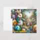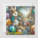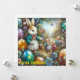 Uma pintura vintage do Coelho da Páscoa, rodeado por ovos de Páscoa brilhantes e quatro crianças pequenas. Este seria um ótimo cartão para uma criança que adora colecionar todos os objetos de recordação da Páscoa. Isso criará memórias felizes. Espaço para escrever no verso do cartão sob uma pequena versão da imagem da frente. Criado com a ajuda do BING.