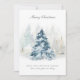 Cartões de natal de Natal da Cena de Neve de inverno, Pastel Azul-Eetéreo e Leve. Um toque de pó azul. A casa azul mais leve de búfalos de fazenda na parte de trás. Feliz Natal na Frente.