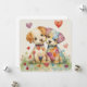 Aquarela de cachorrinhos patchwork com corações para o Dia dos Namorados. Dito fofo, cartão doce.
