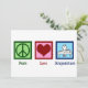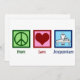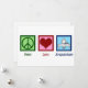 Um legal cartão de férias de acupunturismo, com um bonito sinal verde de paz, um coração vermelho giro, e uma pessoa que pratica bem-estar e tratamento da dor através da acupuntura. Paz Amor Acupuntura Cartões de Natal.