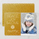 “Paz, alegria & amor.” Uma ilustração divertida e alegre de floco de neve branco e tipografia moderna em um fundo brilhante e cintilante em dourado falso ajuda a trazer a magia da época de festas, junto com a foto personalizada de sua escolha. Pontos de confete brancos enfeitam o cartão. Sinta o calor e a alegria das festas sempre que enviar este lindo cartão de Natal gráfico e personalizado. Envelopes, adesivos, sacolas, papel de embrulho, bandejas, decoração de casa e muito mais combinando também estão disponíveis. Envie para alguém especial!