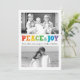 Envie alegria natalina nesta época para os seus entes queridos, mostrando suas fotos favoritas com este simples cartão da PiPo Press. A saudação "Paz & Alegria" é apresentada em letras coloridas de giz de arco-íris com um padrão correspondente no verso. Adicione sua mensagem personalizada para um toque pessoal.