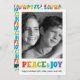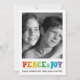 Mande o seu apoio de férias para os seus entes queridos mostrando a sua foto favorita com esta simples carta da PiPo Press. A saudação "Paz e Joy" aparece em letras coloridas de giz do arco-íris. Este design está disponível com um padrão de coordenação ou várias variações de abertura de fotos no verso.