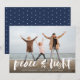 Os cartões com fotos modernos de Chanucá apresentam sua imagem favorita com "Paz e luz" sobrepostas em tipografia de pincel com letras brancas, com seus nomes e o ano abaixo.