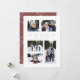 Este cartão de Natal com foto apresenta uma mensagem de paz juntamente com um layout minimalista moderno. O design arejado tem 5 espaços para fotos e espaço para um design personalizado. Perfeito para um cartão de Natal de família, este design também tem uma paleta de cores rosa suave e um verso correspondente com um simples padrão de xadrez natalino em branco. Quer você compartilhe os destaques do seu ano ou as melhores fotos de uma sessão de fotos em família, este cartão de Natal com foto é uma opção versátil para enviar votos de Natal a amigos e familiares.