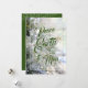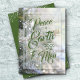 "Paz na Terra e Boa Vontade aos Homens" em cartazes chicos na frente juntamente com uma árvore de Natal nevada, sua saudação e nomes nas costas - uma bela maneira de enviar alegria de férias. Selecione Matte para o papel mais pesado e alta definição para melhor qualidade de impressão.