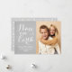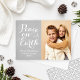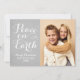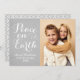 Simplesmente elegante design de cartão de Natal "Paz na Terra" apresenta um design de foto minimalista com escrita em letra cursiva branca bonita e uma foto com texto personalizável. Cor de fundo cinza de pombo pacífico (pode ser personalizada) com aparência texturizada rústica sutil e padrão geométrico moderno no verso.