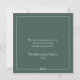 Personalize este simples e elegante cartão de Natal verde com o nome da sua família e texto personalizado. "Paz na terra" escrito em tipografia moderna e elegante está em um tom de pinho perene. A borda quadrada correspondente é verde com fundo branco. No verso, há um verde profundo sólido e elegante com uma fina borda branca. Você pode personalizar o texto branco com suas próprias palavras, se desejar. Certifique-se de adicionar seu nome no verso. Adicionei este design botânico único a outros presentes de Natal ou de festas personalizados nesta coleção.