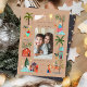 Uma bela bela e fofinha mão religiosa de Natal Paz na Terra pintou ilustração apresentando os três sábios numa paisagem com a estrela de Belém e a cena da natividade em pequenos desenhos ao redor da foto. Esta ilustração está no tema da moda da terra com terracota, ferrugem, marrom e verde. Arte original de Caroline Bonne Müller.
