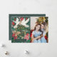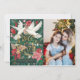 Lindas pombas pintadas cercadas por folhagem e flores verdes de Natal, paz manchada na terra, com a sua foto mais bonita no verso da carta! Arte original de Caroline Bonne Müller