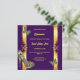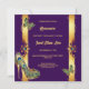 A beautiful, vibrant and luxurious design against a dark lapis purple background on which vertical faux gold bands appear with decorative golden swirls and peacock feathers. Small butterflies are flitting around and a stunning golden stilleto shoe adorned with peacock feathers appears in the bottom left corner. This graphic may be deleted if not required. Faux gold text templates appear down the middle of the 5x7 invitation and are fully customizable. The back has the same design, and additional templates for extra information you may want your guests and family to know. If not required, delete the wording to leave the back with the design only. This stylish, glam, elegant and traditional design is ideal for any 15th birthday Quinceañera or special birthday milestone celebration.