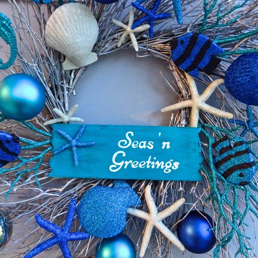Natal perto do mar! Adicione esta maravilhosa carta de saudação plana, inspirada na costa, aos seus feriados temáticos tropicais. A foto-imagem no Cartão apresenta uma haste de videira com peixes coloridos, conchas, corais, miçangas e flores em vários tons de azul, verde, prata e branco. O texto original diz "Seas 'n Saudações" e o texto de trás lê "Enviando desejos para um WARM e um feriado maravilhoso e o melhor no Ano Novo". Todo o texto pode ser excluído ou editado para personalização sem custo adicional. O cartão de feriado está disponível em semirrologia ou acabamento mate. Fotografia de Glenda Motsavage, um escritor e autor viagem na Flórida. Imagem do Museu de Arte Orlando, Festival de Árvores.