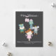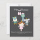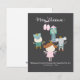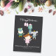 Personagens bonitos do quebra-nozes, o príncipe quebra-nozes, o relógio avô, o rei rato e a fada do açúcar plum. Sapatilhas de bailarina pendem do cumprimento de Boas Festas no topo. Cumprimento personalizável abaixo, juntamente com o nome da família e ano. Cores pastéis e fundo cinza escuro.