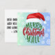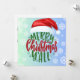 .: Este cartão é divertido e casual, mas também elegante. O design apresenta as palavras "Natal Alegre pra Vocês" usando um chapéu de Papai Noel.. tudo em um fundo verde e azul ombre coberto de flocos de neve. O texto interno é totalmente personalizável.
