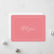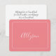 Personalize seu nome em texto branco de script em fundo de pêssego com a mensagem no verso ou deixe o vazio para a nota manuscrita.