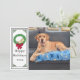 Personalize este modelo de cartão de férias fofo com uma ilustração de um adorável e sonolento cachorrinho da raça Labrador amarelo no meio de uma coroa de Natal com a foto da sua família (ou até mesmo a do seu bebê peludo). No verso, você pode escrever sua própria mensagem de Natal para todos e certifique-se de colocar seu nome na frente do cartão.
