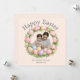 Celebrate Easter in style with this beautiful, customizable greeting card! Featuring a delicate wreath of pink tulips, pastel Easter eggs, and fresh spring flowers, this card adds a warm, personal touch to your holiday wishes. Perfect for families, this card allows you to include your own family photo and name, making it a memorable keepsake for Easter 2026. Ideal for sending love and joy to friends and relatives.