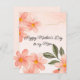 Nosso cartão do Dia das Mães Peachy Flowers apresenta um fundo cor de pêssego com flores de pêssego nos cantos superior e inferior esquerdos e no canto inferior direito. O texto na frente diz: "Feliz Dia das Mães para minha mãe".