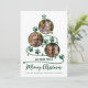 Adicione suas fotos de gato bonitinho a este cartão de Natal personalizado do amante de animais de estimação, com a árvore de Natal formada por três fotos e estampas de pata. No verso está um padrão de estampas de pata de gatos.