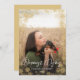 Um belo ouro floco de neve moldou um modelo fotográfico. Linda tipografia de script. Edite facilmente a frente de modelo, adicionando seu nome de família e carregando sua própria foto. A parte de trás é impressa com um fazer de cor suave e simples, pronto para a sua mensagem manuscrita. Ou, se preferir, você pode usar as ferramentas de edição de modelo do Zazzle e adicionar sua própria mensagem digitada às costas. Esta foto é apenas para fins de demonstração. Por favor, substitua-o pela sua própria imagem. Cartão de Natal De Pet Photo.