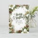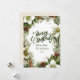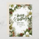 Traga elegância eterno aos seus cartões de natal com este design de Natal verde e branco. Apresentando flores de inverno, galhos de pinheiros verdes e sotaques naturais suaves, ele captura perfeitamente o charme pacífico da estação. A combinação de flores delicadas e verde rústico faz dela uma escolha refinada, mas acolhedora, para espalhar alegria festiva.