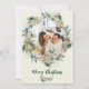 Envie a elegância do inverno com este cartão de férias refinado, com uma coroa de verdes sagrados e sazonais ao estilo nórdico, acentuada por delicados detalhes de festas de neve de ouro metálico. As texturas moles de aquarela e o layout limpo evocam a moderna e minimalista tipografia colorida e galhos de pinheiro na moda, estética de cartas de Natal, fazer ideal para aqueles que amam beleza subestimada com uma reviravolta festiva. Sua foto de família está no coração do design, emoldurada pela folhagem e por uma mensagem original impressa que pode ser usada como está ou personalizada. Perfeito por enviar desejos de Feliz Natal e Ano Novo com charme escandinavo e graça botânica.