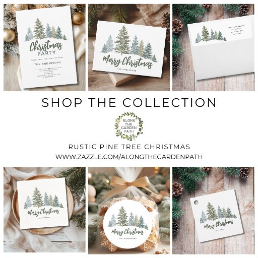 Celebre a época em estilo com este cartão de Natal rústico com uma floresta aquosa de árvores verdes. O design festivo combina encanto rústico com tipografia moderna, fazer perfeito para enviar Cartões de natal para a família e amigos. Fácil de personalizar com seu próprio nome.