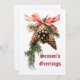 Esta modelo de cartão Natal Holiday apresenta uma simples ramificação de árvore de Natal rústica com pinecones e uma fita vermelha. Você pode personalizar facilmente o texto e personalizar a cor de fundo com este modelo.