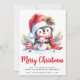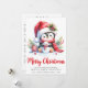 Cartão De Festividades Pinguim Fofo Branco e Vermelho Feliz Natal