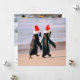 Cartão De Festividades Pinguins com Chapéus de Papai Noel na Praia