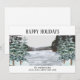 Celebre a temporada com este cartão de Natal tranquilo, apresentando uma cena pacífica de inverno com pinheiros cobertos de neve ladeando um lago congelado. O céu cinza suave e a floresta congelada criam uma atmosfera calma e aconchegante, perfeita para enviar votos calorosos. A parte superior lê "Felizes Festas" em letras clássicas serifadas, enquanto a parte inferior inclui espaço para personalizar com o nome da sua família. Uma escolha linda para os amantes da natureza e aqueles que apreciam um clima invernal sereno e rústico.