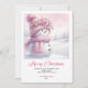 Cartão De Festividades Pink coquette snowman kids card editable instant