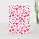 This valentines day card features a seamless pattern of red and pink hearts against a pink background.