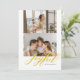 Um cartão de férias plano com duas fotos apresenta pintura de letra com pincel da palavra "Alegre".