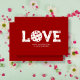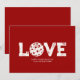 Cartão Elegante minimalista de saudação de Dia de os namorados com um sentimento de AMOR angustiante, substituindo o O por um gráfico de bola de picleball. Crimson, fundo vermelho. Perfeito para qualquer fã de picleball.