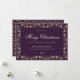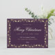 Púrpura personalizada e ouro Cartão de Natal Merry com ouro holly sobre fundo roxo escuro.