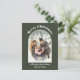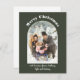 Mostre sua foto favorita com esses cartões de natal simples e fáceis de personalizar. Sua foto vertical ou orientada a retratos aparece em uma forma de arco atraente com seu título acima em letras brancas e seus nomes ou outro texto personalizado abaixo em caracteres de script brancos correspondentes. O texto e a fotografia são colocados sobre um fundo de cor verde-azeitona escuro.
