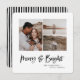 Cartão de natal multifoto feliz e brilhante. Design de Natal preto e branco moderno. Script de texto com uma borda moderna. Mão pintada com o apoio listrado. Altere a cor do pacote para personalizar.