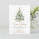 A Caligrafia Dourada Elegante Moderna Escreve Cartões De Natal Não Fotografados. Este simples e festivo Cartões de natal de Natal minimalista apresenta uma árvore de natal de aquarela com bolas de ouro decorativas e confete e um texto de saudação "Feliz Natal" que é escrito num tipo de letra bem escrito, com a mão, em ouro e branco. No padrão inverso da árvore de natal sobre fundo verde empoeirado. Estas Cartões de Natal Festivas e Personalizadas são uma forma excelente de lembrar aos entes queridos que vocês estão pensando nelas nesta temporada de Férias de inverno.