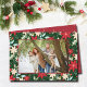 Na moda, poinsettias vermelhas e marfim, bagas e folhas enquadram sua foto favorita. Sua saudação e personalização estão em letras quentes no verso. Selecione alta definição para melhor qualidade de impressão. Layout VERTICAL disponível em nossa coleção.
