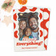 Celebre a temporada com nosso cartão de férias Pontos Retrô Feliz Tudo! Este design elegante e divertido apresenta pontos coloridos e um espaço para sua foto favorita, tornando-o a maneira perfeita de espalhar alegria festiva.