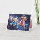 A dog Valentine's Day card featuring a poodle couple in a flying saucer going to the moon.