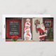 Um cartão com fotos de férias divertido e alegre com uma sala decorada para as férias e Papais noeis que se acenam alegremente. Adicione sua foto e seu nome.