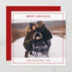 Celebre a alegria da época de férias com este cartão com fotos branco e vermelho elegante e minimalista. A design destaca uma estética moderna, com uma fotografia familiar quente com simples bordas vermelhas para enquadrar o momento festivo. Feito com linhas limpas e um encantador sentimento de feriado, este cartão adiciona uma classe às suas saudações sazonais.