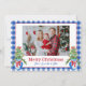 Cartão de Feriado Gingham de Marinho de Árvore de Natal Ginger Jar Preppy, texto de cartão de Natal personalizado editável.