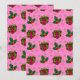 Este cartão de Natal apresenta presentes de Natal vermelhos retrô com laços verdes em um fundo rosa com folhas de azevinheira e frutos.