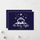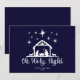 Simples e adorável Oh Noite Santa roteiro tipografia com presépio em um fundo azul-marinho. Espaço para o nome da sua família e ano. Veja itens coordenados, como papel de embrulho, etiquetas de presente, bem como variações deste cartão com fotos em nossa loja.