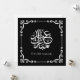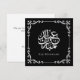Cartão de saudação de feliz Eid Mubarak em cor preta para dar aos seus entes queridos para a celebração desta ocasião especial de feriado islâmico muçulmano. Há um texto em fonte de escrita branca escrito na parte inferior do cartão. Há um filigrana rococó em cor creme marfim rodeando a bela moldura da borda. Caligrafia árabe no meio. Design clássico. Você pode personalizar este modelo editando as informações mencionadas no verso do cartão. Antigo. Vintage. Eid al-Adha. Eid ul-Fitr. Linha dela para design copyright.