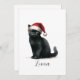 Cartão De Festividades Preto de Aquarela Gato Festivo de Santa Chapéu