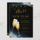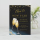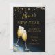 Convide sua família e amigos para celebrar sua festa de Ano Novo brilhante com nosso lindo convite cintilante dourado. O design apresenta brilhos dourados, um fundo preto aquarela e um "Brindes" ao roteiro do Ano Novo. Personalize com os detalhes da sua festa.